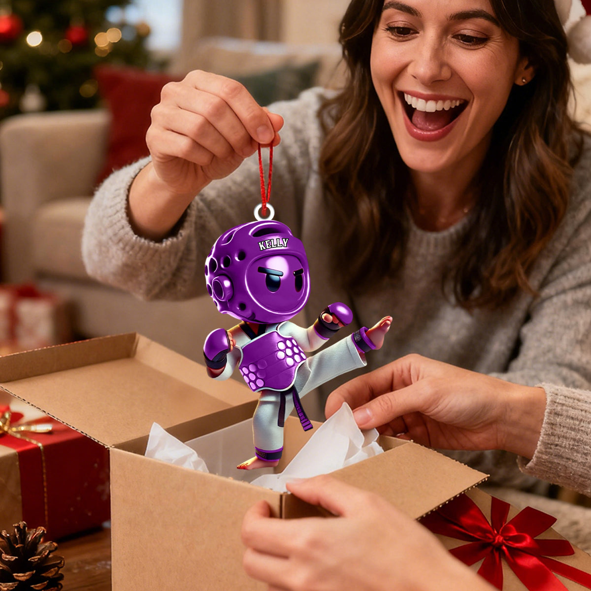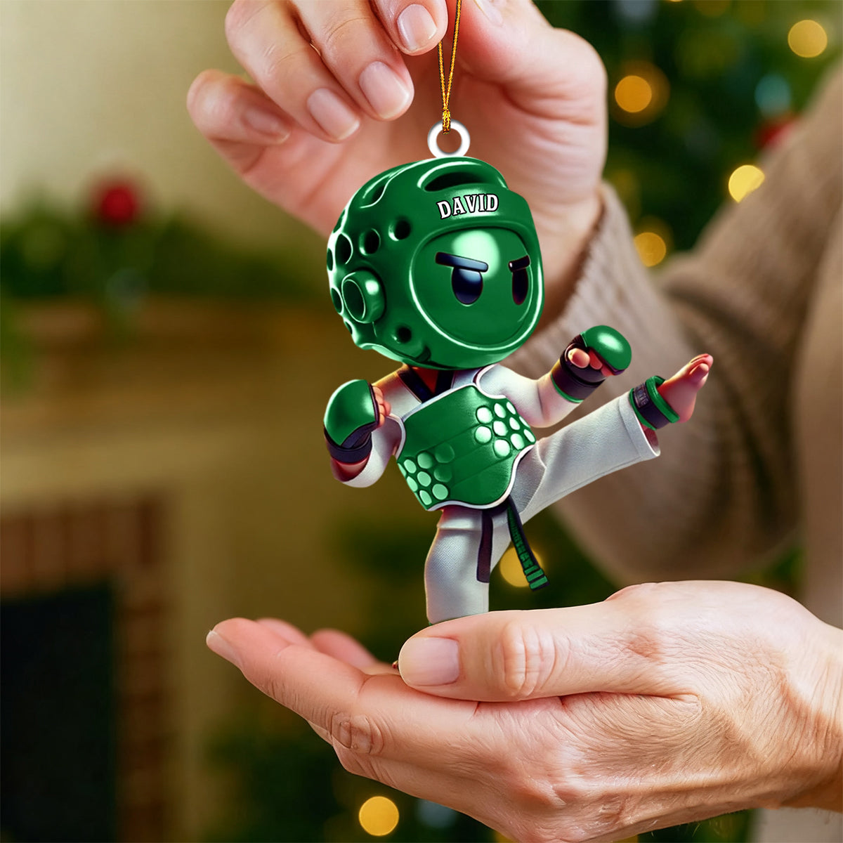 Honor your Taekwondo champion with this personalized Christmas ornament, featuring their name and a dynamic martial arts design. Whether they're a beginner or a black belt, this custom acrylic keepsake captures their dedication, discipline, and strength in every detail.
