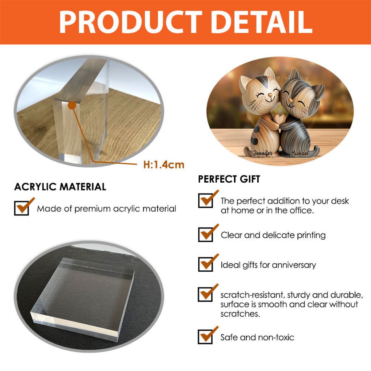 Celebrate your feline love story with our Personalized Cute Cat Couple Acrylic Plaque! This custom-shaped keepsake transforms you and your partner into adorable cat characters, creating a purr-fectly unique gift. Crafted from premium acrylic for a sleek, modern look that captures your special bond in the most whimsical way possible. A charming addition to any home that's sure to make everyone smile!✨