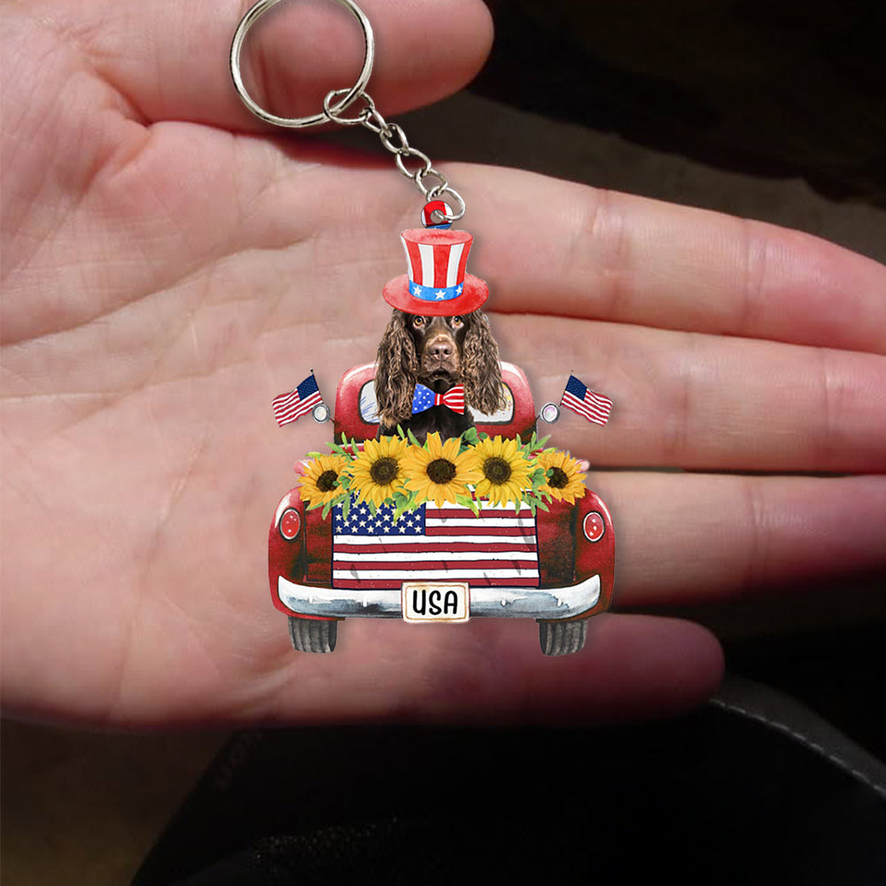 Boykin Spaniel-USA Truck Flat Acrylic Keychain